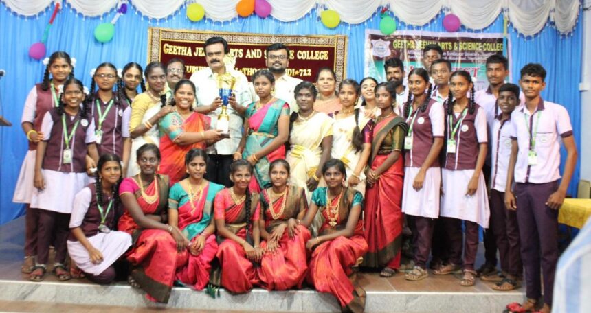 தூத்துக்குடி குறுக்குசாலை கீதாஜீவன் கலை மற்றும் அறிவியல் கல்லூரியில் பள்ளிகளுக்கு இடையோன கலை மற்றும் அறிவுதிறன் போட்டிகள் நடைப்பெற்றது. சுமார் 15 பள்ளிகளின் மாணவ மாணவிகள் கலந்து கொண்டனர். அதில் தமிழ் மற்றும் ஆங்கிலம் பேச்சுபோட்டி, கோலபோட்டி, வினாடிவினா, நெருப்பின்றி சமையல், நாட்டுபுற நடன போட்டி நடைப்பெற்றது. இதில் அதிக போட்டிகளில் வெற்றி பெற்ற புனிதவளனார் மேல்நிலைப்பள்ளி கீழமுடிமண் பள்ளி சுழற்கோப்பை பெற்றது. கல்லூரி செயலாளர் ஜீவன் ஜேக்கப் மற்றும் அறக்கட்டளை உறுப்பினர்கள் சுதன்கீலர், சுதாசுதன், மரு.மகிழ் ஜான், கீர்த்தனாமகிழ் பரிசுகள் வழங்கினார்கள்.