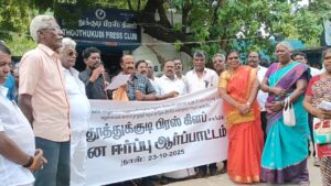 தூத்துக்குடி பிரஸ் கிளப் பொருளாளர் ராஜு நன்றியுரையாற்றினார்.