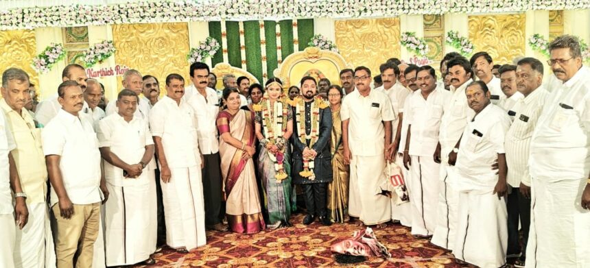 தூத்துக்குடி வடக்கு மாவட்ட திமுகவிற்குட்பட்ட விளாத்திகுளம் சட்டமன்ற தொகுதி புதூர் மத்திய ஒன்றிய செயலாளர் ராதாகிருஷ்ணன் இல்ல திருமண விழா எட்டையாபுரத்தில் நடைபெற்றது. மணமக்களை தூத்துக்குடி வடக்கு மாவட்ட செயலாளரும் சமூக நலன் மற்றும் மகளிர் உரிமைத்துறை அமைச்சருமான கீதாஜீவன், விளாத்திகுளம் சட்டமன்ற உறுப்பினரும், சட்டமன்ற சட்டவிதிகள் ஆய்வு குழு தலைவருமான மார்கண்டேயன் ஆகியோர் கலந்து கொண்டு மணமக்களை வாழ்த்தினார்கள்.