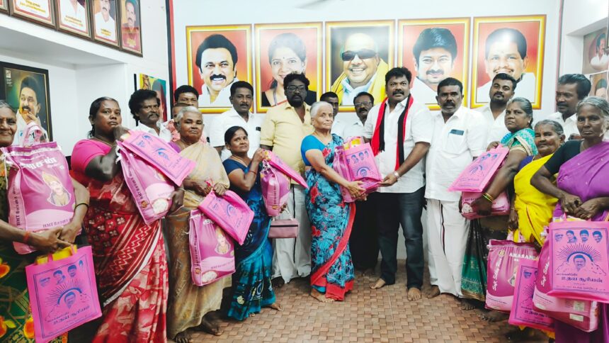 அதன்படி இன்று தமிழக துணை முதலமைச்சருமான உதயநிதி ஸ்டாலின் பிறந்த நாளை முன்னிட்டு தெற்கு மாவட்ட திமுக சார்பில் ஒட்டப்பிடாரம் வடக்கு ஒன்றிய திமுக செயலாளரும் முன்னாள் பஞ்சாயத்து தலைவருமான இளையராஜா ஏற்பாட்டில் 101 பயனாளர்களுக்கு வேட்டி– சேலை மற்றும் 10 கிலோ அரிசி உள்ளிட்ட நலத்திட்ட உதவித் தொகுப்புகளை ஒட்டப்பிடாரம் மேலமடம் கட்சி அலுவலகத்தில் வைத்து ஒட்டப்பிடாரம் வடக்கு ஒன்றிய செயலாளரும் முன்னாள் ஊராட்சி மன்ற தலைவருமான இளையராஜா நலத்திட்ட உதவிகளை வழங்கினார். இந்த நிகழ்ச்சியில் வடக்கு ஒன்றியத்துக்குட்பட்ட நிர்வாகிகள் தொண்டர்கள் உள்பட பலர் கலந்து கொண்டனர்.