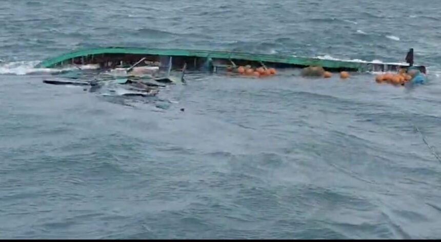 தூத்துக்குடி கடலில் மூழ்கிய விசைப்படகு 40 லட்சம் இழப்பு 9 போ் பத்திரமாக கரைசோ்ந்தனா்.
