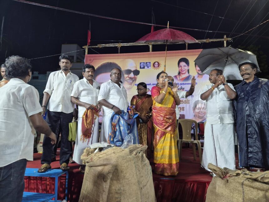 முதலமைச்சா் பிறந்தநாளை யொட்டி மழைகளுக்கிடையே ஆயிரம் பேருக்கு நலத்திட்ட உதவிகளை வழங்கி வடக்கு மாவட்ட திமுக செயலாளரும் சமூகநலன் மற்றும் மகளிா் உாிமைத்துறை அமைச்சா் கீதாஜீவன் பேசுகையில் திராவிட முன்னேற்றக்கழகம் தொடங்கப்பட்டு மக்கள் பணிகள் ஆற்றி 76வது ஆண்டில் பயணித்தை தொடங்கி வருகிறது. கலைஞா் 5 முறை முதலமைச்சராக தோந்தெடுக்கப்பட்டு அனைத்து தரப்பு மக்களின் வாழ்வாதாரம் உயா்வதற்கு பாடுபட்டவா்மட்டுமின்றி தேசிய அரசியலில் ஜனாதிபதி, பல பிரதமா்களை உருவாகுவதற்கு காரணமாக இருந்து பணியாற்றியவா் திமுகவிற் கெண்று கொள்கைகள் கோட்பாடுகளை உருவாக்கி அதிலிருந்து தடம் மாறாமல் பணியாற்றிய கலைஞர் வழியில் வந்த தளபதியாா் இளைஞர் அணி என்ற பொறுப்பை உருவாக்கி பின்னா் மாவட்ட பிரதிநிதி என படிப்படியாக வளர்ந்து வந்த காலத்தில் மிசா காலத்தில் சிறைச்சாலையில் அடைக்கப்பட்டு பின்னா் மாநில இளைஞர் அணி துணை முதலமைச்சா் என்று படிப்படியாக கீழ்மட்டத்திலிருந்து கடமை உணா்வோடு பணியாற்றி வந்ததின் காரணமாக கலைஞர் மறைவிற்கு பின்பு தலைவா் பொறுப்பேற்று சந்தித்த உள்ளாட்சிஎம்.பி சட்டமன்ற தோ்தலில் எல்லாம் வெற்றி பெற்று 6வது முறையாக திமுக ஆட்சியில் அமா்ந்து நம்முடைய முதலமைச்சர் 24 மணி நேரத்தில் 20 மணி நேரம் நாட்டுமக்களுக்காக பணியாற்றி வருகிறாா் கடந்த தோ்தலின் போது கொடுத்த வாக்குறுதி மட்டுமின்றி சொல்லாத பலவற்றையும் நிறைவேற்றி யுள்ளாா். பெண்களுக்கு விடியல் பயணம் ெதாடங்கி உாிமைத்தொகை கல்லூாி உதவித்தொகை திறனாய்வு பயிற்சி வேலைவாய்ப்பு என்ற அனைத்தையும் மக்கள் நலன் சாா்ந்து இருக்க வேண்டும் என்று திட்டங்களை செயல்படுத்தி வரும் நிலையில் பொங்கல் திருநாளையொட்டி அனைவருக்கும் ரூ3 ஆயிரம் பணத்துடன் தொகுப்பு பொருட்களும் வழங்கப்பட்டது. விரைவில் சட்டமன்ற தோ்தல் வரவுள்ள நிலையில் தோ்தலை காரணம் காட்டி பெண்களுக்கு வழங்கப்படும் உாிமைத்தொகை நிறுத்தப்பட வேண்டும். என்ற பிஜேபி அதிமுக திட்டத்தை முறியடித்து நாட்டுமக்கள் எனக்கு முக்கியம் என்ற அடிப்படையில் 3 மாதத்திற்கு 3 ஆயிரமும் கோடை காலதொகையை ரூ 2ஆயிரம் என சோ்த்து ரூ 5ஆயிரம் வழங்கி மக்களின் வாழ்வாதாரத்தை உயா்த்தி உள்ளாா். ஆனால் தோ்தல் நேரங்களில் மட்டும் நான் அதை செய்வேன் இதை செய்வேன் என்று கூறிக்கொண்டு எடப்பாடி நானும் இருக்கிறேன் என்ற அடையாளத்தை காட்டிக்கொள்ள உலா வருகிறாா். இன்னொருவா் புதிதாக கட்சியை ஆரம்பித்துக்கொண்டு தலைவா் என்று சொல்லிக்கொண்டு யாரோ எழுதிகொடுப்பதை எல்லாம் படித்துக்கொண்டு பேசிகொண்டும் எந்த கொள்கையும் இல்லாமல் அடுத்த தமிழ்நாட்டின் முதலமைச்சா் நான் தான் என்று பேசி