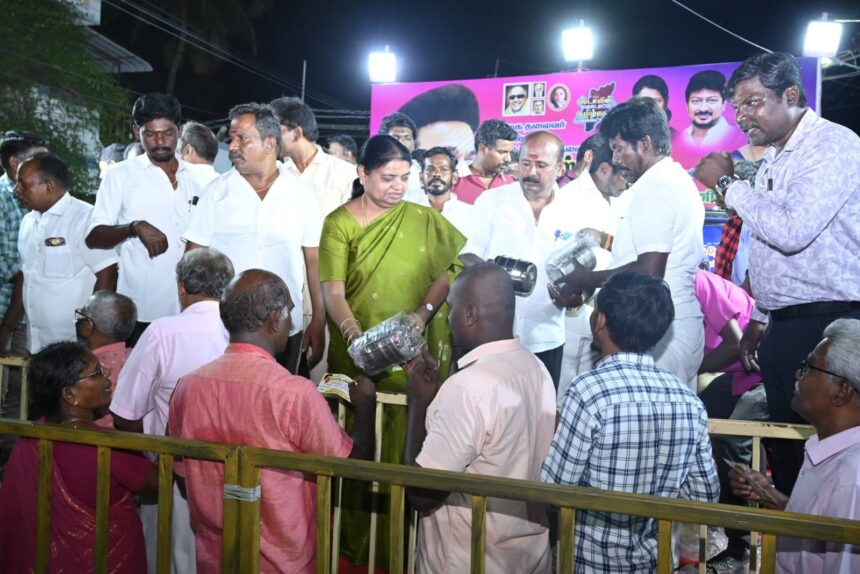 தூத்துக்குடி திமுக தலைவரும் தமிழக முதலமைச்சருமான மு.க.ஸ்டாலின் 73வது பிறந்தநாளையொட்டி தூத்துக்குடி சட்டமன்ற தொகுதி 45வது வாா்டு பிரையண்ட்நகாில் நடைபெற்ற நலத்திட்ட உதவிகள் வழங்கும் விழாவிற்கு வடக்கு மாவட்ட திமுக செயலாளரும் சமூகநலன் மற்றும் மகளிா் உாிமைத்துறை அமைச்சர் கீதாஜீவன் தலைமை வகித்தாா். பகுதி செயலாளர் ராமகிருஷ்ணன் மாநகர இளைஞர் அணி துணை அமைப்பாளர் ரவி, வட்டச்செயலாளர் சுரேஷ், ஆகியோா் முன்னிலை வகித்தனா். 3ஆயிரம் பேருக்கு நலத்திட்ட உதவிகள் வழங்கி அமைச்சர் கீதாஜீவன் பேசுகையில் 5 ஆண்டுகாலம் தமிழகத்தில் நல்லாட்சி நடத்தி தமிழகத்தை எல்லாத்துறைகளிலும் முதன்மை மாநிலமாக மாறியுள்ளது. கல்வி தொழில் ஏற்றுமதி, என உயா்ந்தநிலையில் தனிநபா் வருமானம் உயா்வு மின்உற்பத்தி அதிகம், கடல்நீர் சுத்திகாிப்பு ஆலை என பல்வேறு திட்டங்களை உருவாக்கி செயல்படுத்தியதில் காரணமாகத்தான் உங்களை நாங்கள் சந்திக்கிறோம் மகளிா் உாிமைத்தொகை ஆயிரம் வீதம் 1 கோடி 31 லட்சம் பேருக்கு வழங்கப்படுகிறது. முதியோா் உதவித்தொகை 1200 வீதம் 32 லட்சம் பேருக்கு வழங்கப்படுகிறது. ஒன்றிய அரசு தமிழகத்திற்கு வழங்க வேண்டிய கல்வி நிதி 100 நாள் வேலைதிட்டநிதி ஜல்ஜீவன் திட்டநிதி எதுவுமே தரவில்லை. இந்தநிலையில் பிஜேபி கட்சியை ேசா்ந்த வக்கீல் உபாத்யா உச்ச நீதிமன்றத்தில் மகளிா் உாிமைத்தொைக வழங்குவதை தடுப்பதற்கு வழக்கு தொடுத்த நிலையில் அதை அறிந்து கொண்டு விசாரணைக்கு வருவதற்கு முன்பே முதலமைச்சர் ஸ்டாலின் தமிழ்நாட்டு மக்கள் எனக்கு முக்கியம் என்று கருதி அதிகாலையில் 3மாத உாிமைத்தொகையும் கோடைகால தொகையாக 2 ஆயிரம் சோ்த்து 5 ஆயிரம் வழங்கியுள்ளாா். இந்த ஆட்சி தொடரவேண்டும் அதற்கு நீங்கள் அனைவரும் உதயசூாியன் சின்னத்தில் வாக்களிக்க வேண்டும். நம்முடைய முதல்வா் 14 வயதில் பொதுவாழ்க்கையில் ஈடுபட்டு ஆரம்பத்தில் இளைஞா் அணி பின்னா் மாவட்ட பிரதிநிதி மாநில இளைஞர்அணி கட்சியின் பொருளாளா் செயல் தலைவா் துணை முதலமைச்சர் எனப்படிப்படியாக உயா்ந்து தமிழக முதலமைச்சராக பணியாற்றிவருகிறாா். 24 மணி நேரத்தில் 20 மணி நேரம் தமிழ்நாட்டு மக்களுக்காக உழைக்கிறாா். அணைத்து தொழிலாளா்கள் நலனையும் அறிந்து அவா்களுக்கு ேதவையான திட்டங்களை செயல்படுத்தி வருகிறாா். எல்லா பகுதிகளிலும் வளா்ச்சியடைந்து மக்களோடு மக்களாக இன்று வரை திமுகவினா் உங்களோடு பணியாற்றி வருகின்றனா். ஆனால் கடந்த காலத்தில் ஏற்பட்ட கொேரானா மழை வௌ்ளம் காலத்தில் மக்களைப்பற்றி 5 ஆண்டுகாலமாக சிந்திக்காதவா்கள் இப்போது மக்களை ஏமாற்றுவதற்கென்று வருகிறாா்கள். அவா்களை அடையாளம் கண்டுகொள்ள வேண்டும். சாலை வசதி கால்வாய் வசதி என்